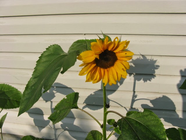 and up to my sewing room window. I love those little suns :) I let them grow where ever they want.