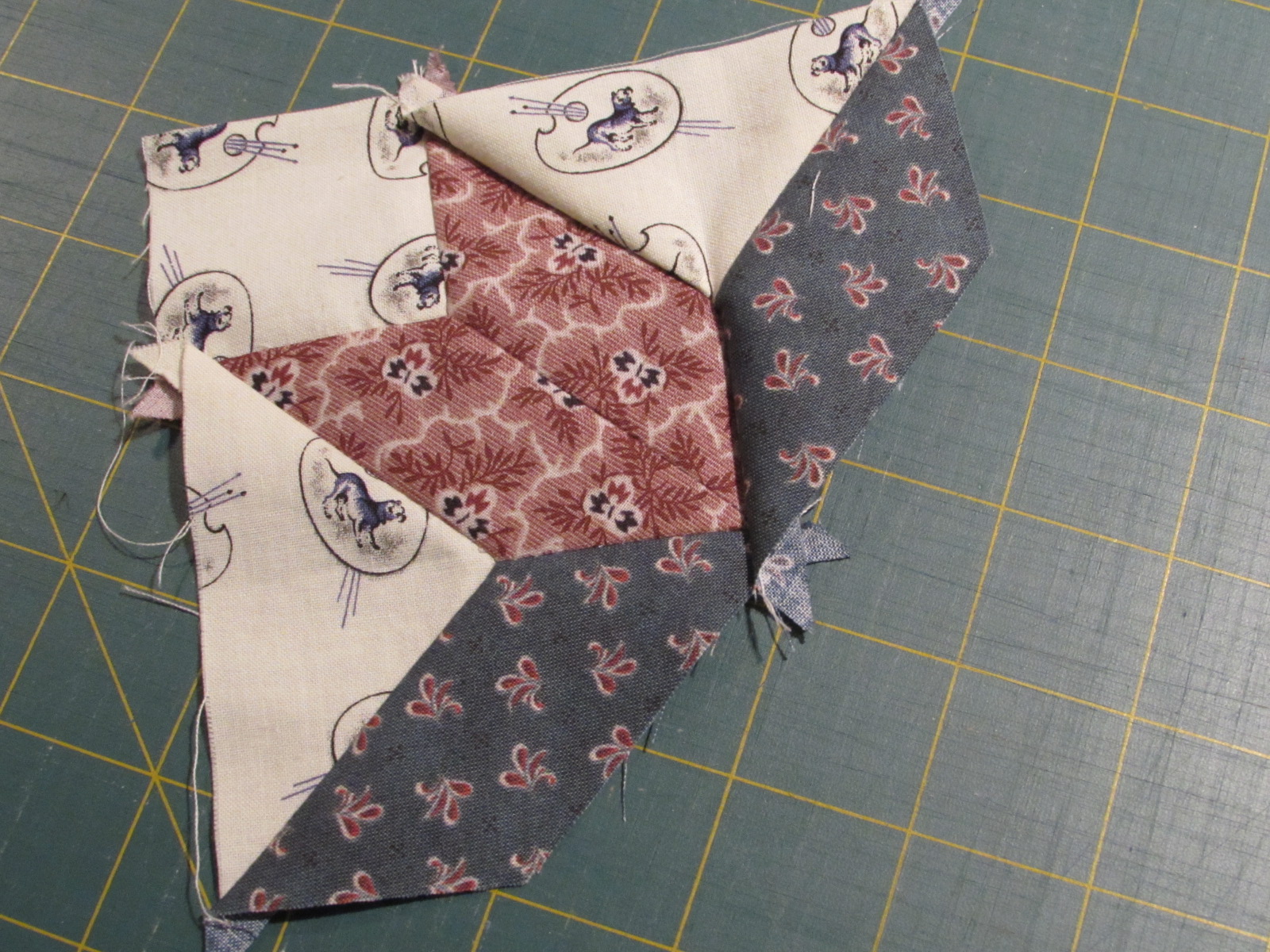Then the fourth unit is ... to be unstitched. It won't lay flat at all. It warps. ARGH!! So I restitched, and unstitched, and re-restitched and ... I examined the others, trying to find what I was doing differently. During the examination, I realized something. The block is to finish at 12.5 inches so each unit has to be 6.5, right? Well, they are not! WHAT???