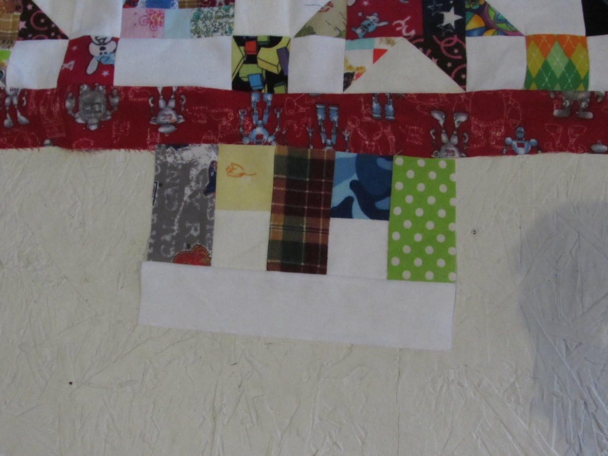 Your pieced border is going to frame the quilt really nicely. Bummer your son didn't like the larger scale but at least it is still scrappy.